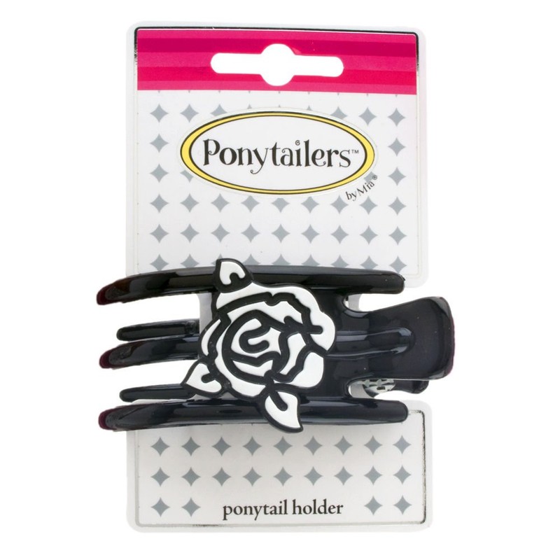 - Item Condition: 100% authentic, new and unused. Mia Ponytailers Ponytail Holder Model No. 00950 - Black with White Rose.