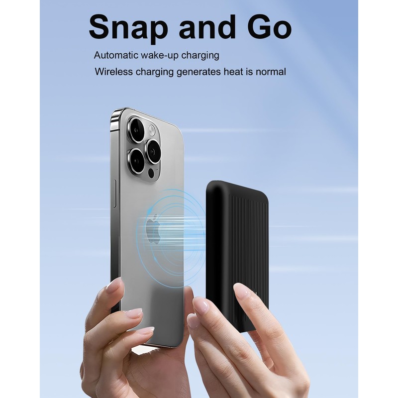- Strong Magnetic Hold: With 5W wireless charging, this portable charger is equipped with a powerful magnetic charging pad, keeping the battery pack securely attached to your phone. The self-activating wireless charging feature kicks in automatically when you attach itno need to turn it on manually.
