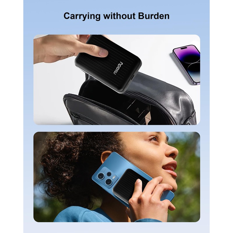 Miady Miady Mini MagSafe-Compatible Portable Charger, 5000mAh 5W Compact Magnetic Power Bank for iPhone 16/15/14/13/12, 12W USB-C Charging Battery Pack