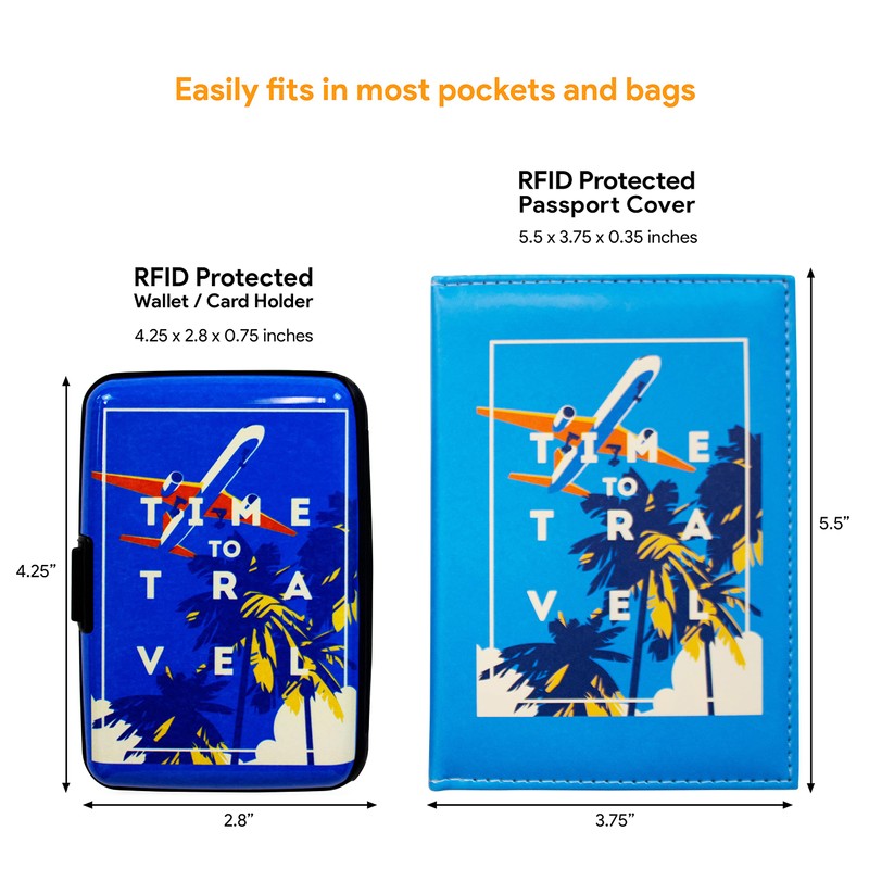 Miami CarryOn RFID Protected Wallet and Passport Cover Set (Time to Travel)