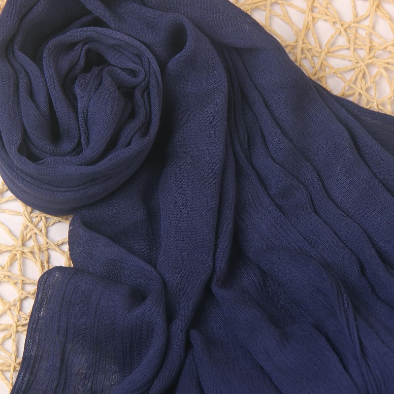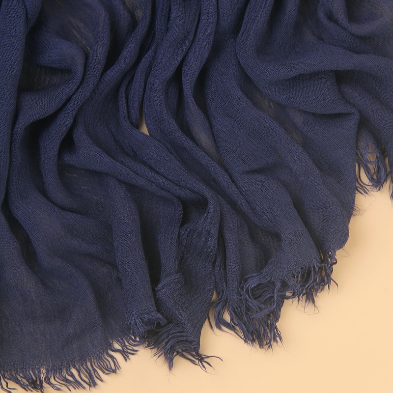 MiaoChoice Cotton Linen Plain Hijab Scarf For Women,Muslim Viscose Crinkle Edge With Fringe,Summer Beach Wrap Headwraps Shawl (55#NavyBlue)
