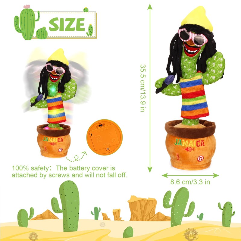 - 【Special Microphone Version】: Super Funny 270 degree rotation dancing cactus singing Pop music. This Version Which Including Dancing, Singing and Repeating Functions. There are 60 songs in many language it can sing. It can repeat your words. Load the batteries and press the button. It will twist his body and rotate 360 degrees when singing. If you have any problems after receiving the packages, you can contact us immediately, we will solve your problem within 12 hours.