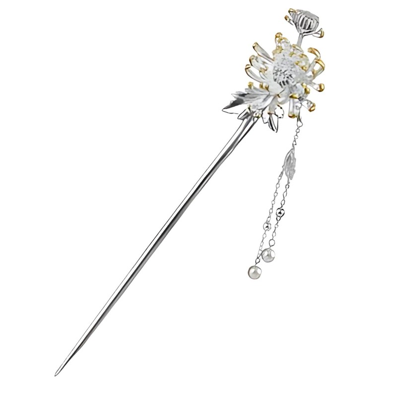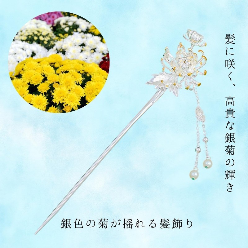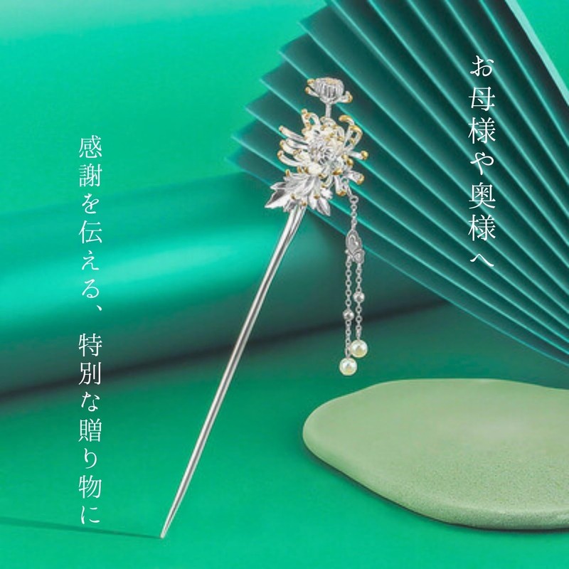[ミャオミャオ] かんざし 簪 一本 和装 留袖 着物 浴衣 髪飾り 金属 春夏秋冬シリーズ オータム フラワー 秋の花 パール シルバー ヘアアクセサリー Miaomyao (菊 キク)