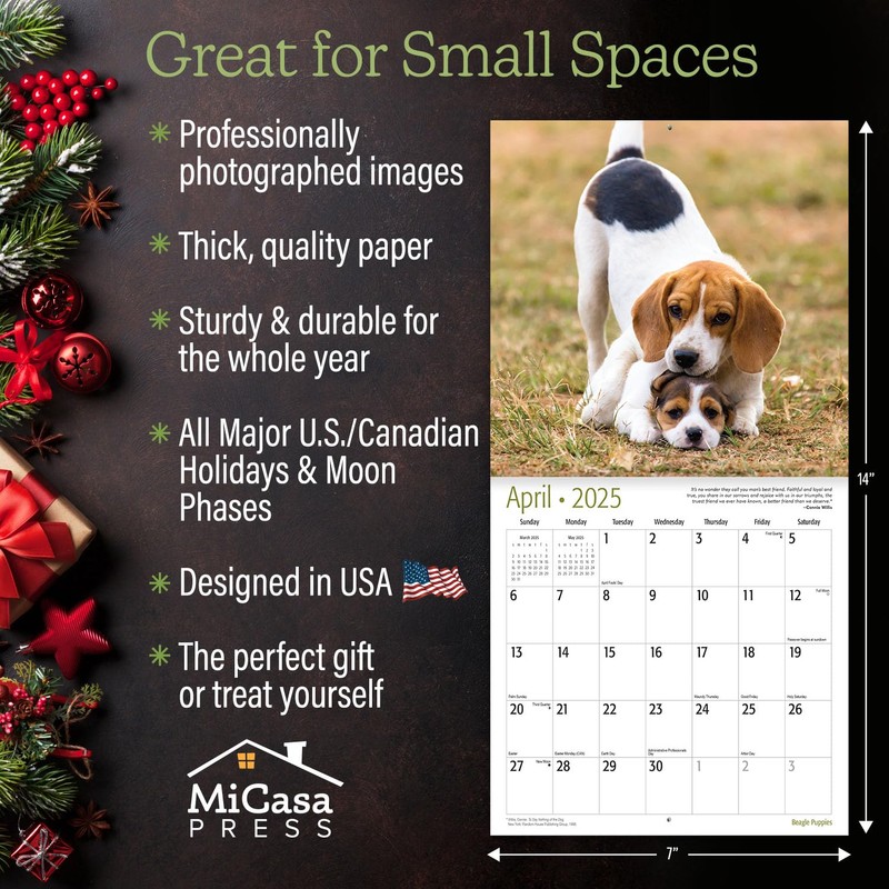 MICASA Beagle Puppies Mini 2025 Wall Calendar 12 Month | 7" x 14" Open | Thick & Sturdy Paper | Giftable | Calendar 2025