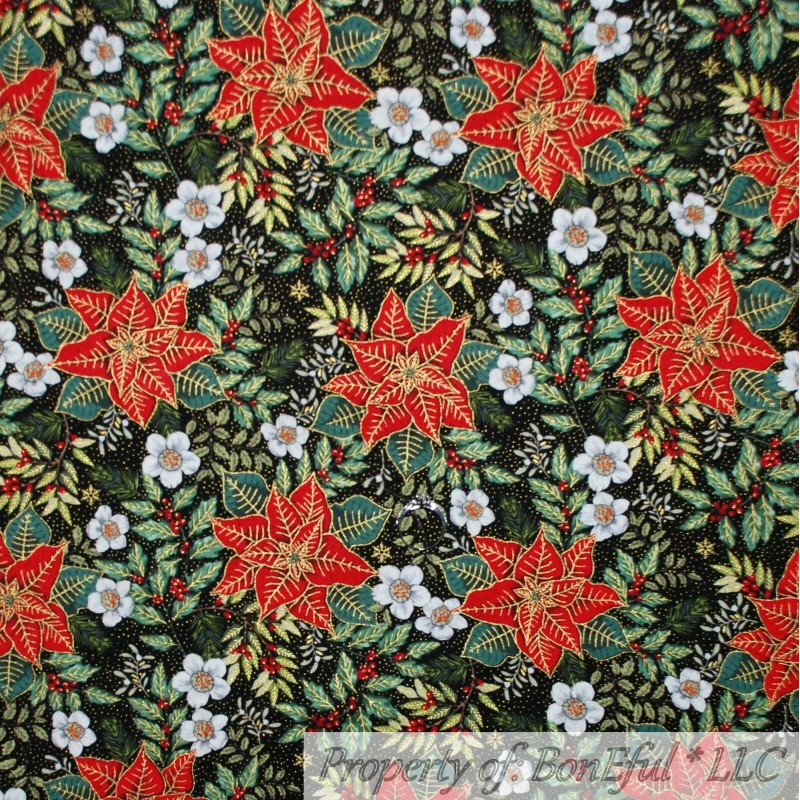 Michael Miller Fabric BonEful FABRIC FQ Cotton Quilt Black White B&W Red Holly Berry Xmas Flower Tree