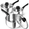 MICHELANGELO Stainless Steel Saucepan with Lid, Triply Base Stainless Steel Pot Set with Bakelite Handle, 1QT & 2QT & 3QT Saucepan Set - 6 Pcs Sauce Pans