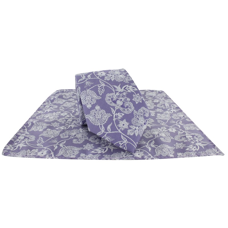 Michelsons of London Sprawling Floral Tie & Pocket Square Set (Lilac)