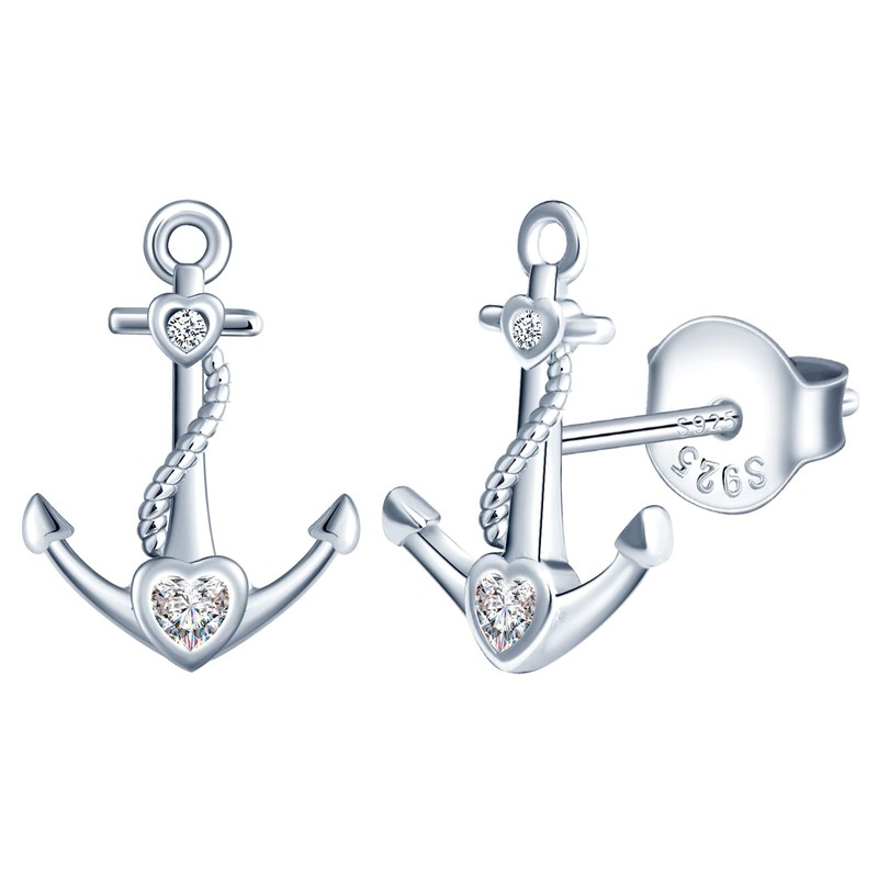 MicLee Earrings studs for women and girl, 925 sterling silver earrings, Anchor earrings studs, Inlaid zircon, fashion elegant women's earrings, silver