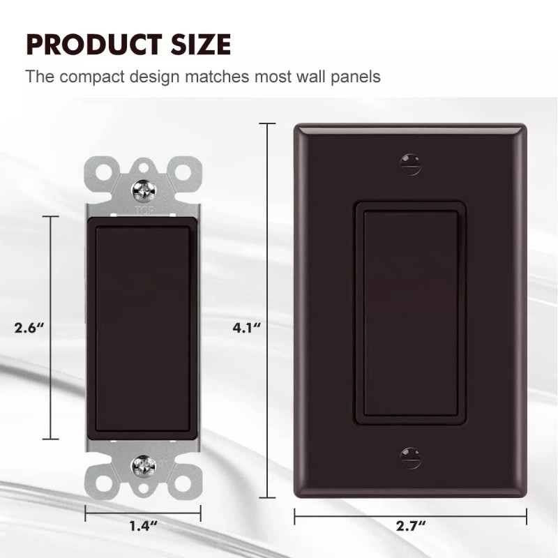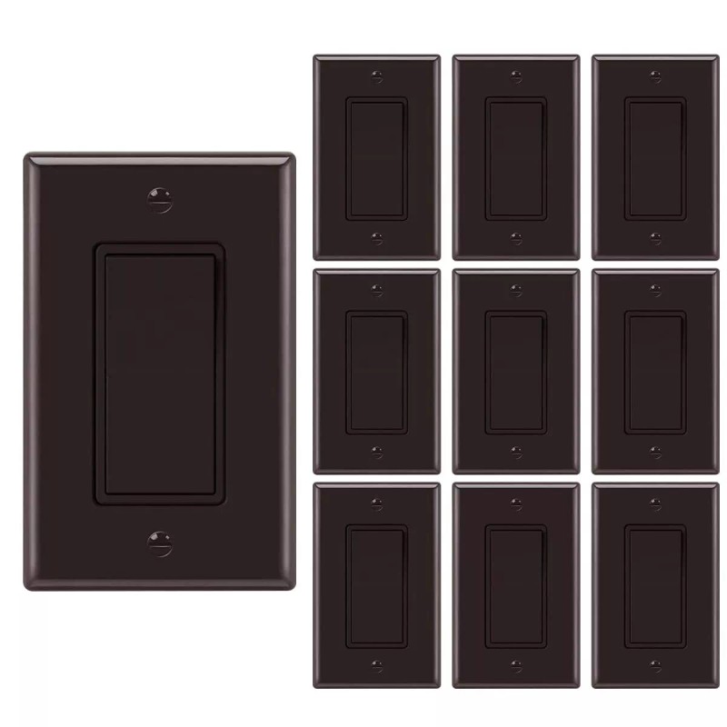 MICMI Decora Light Switch Brown, Single Pole Paddle Rocker,15A 120V/277V,10 Pack