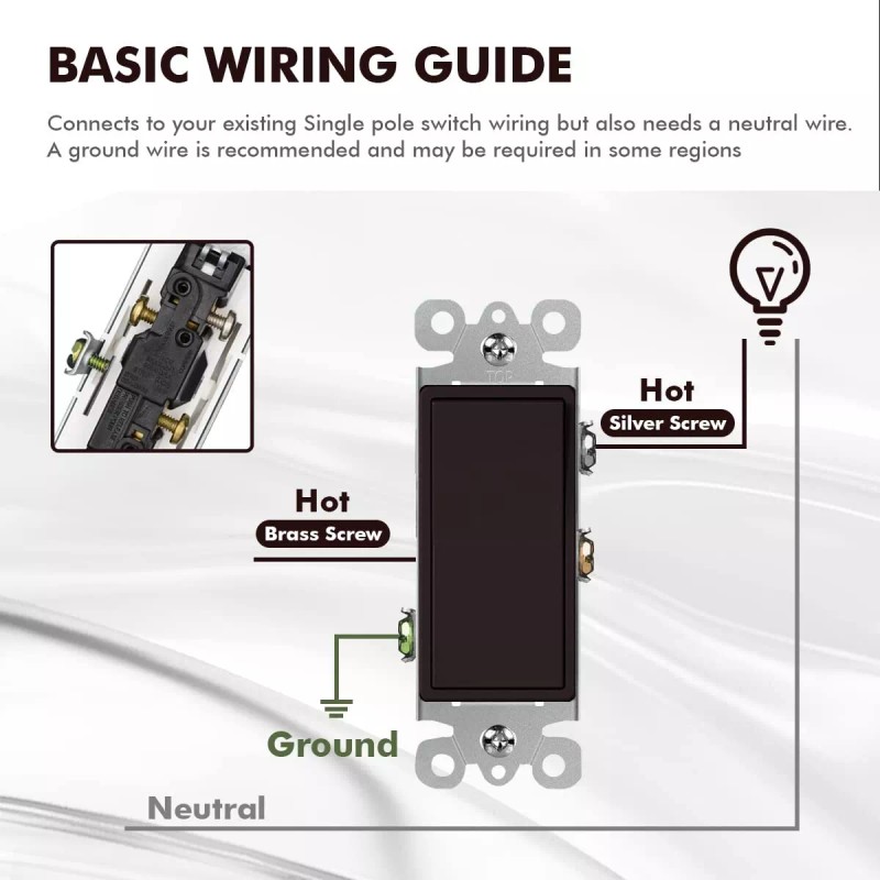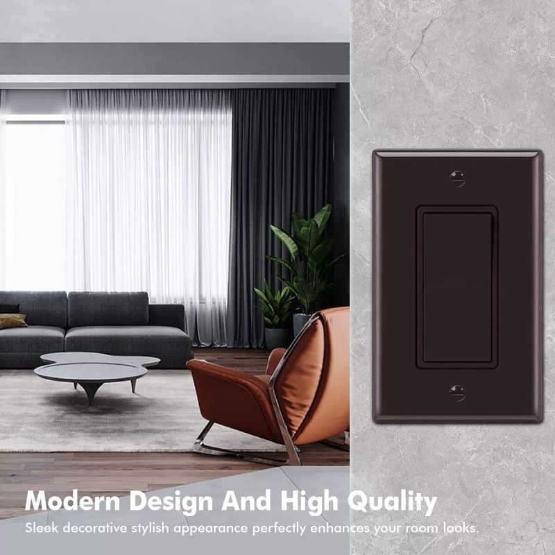 Single pole Decora Light Switch, Paddle Rocker Residential Grade 3 Wires Grounding Brown