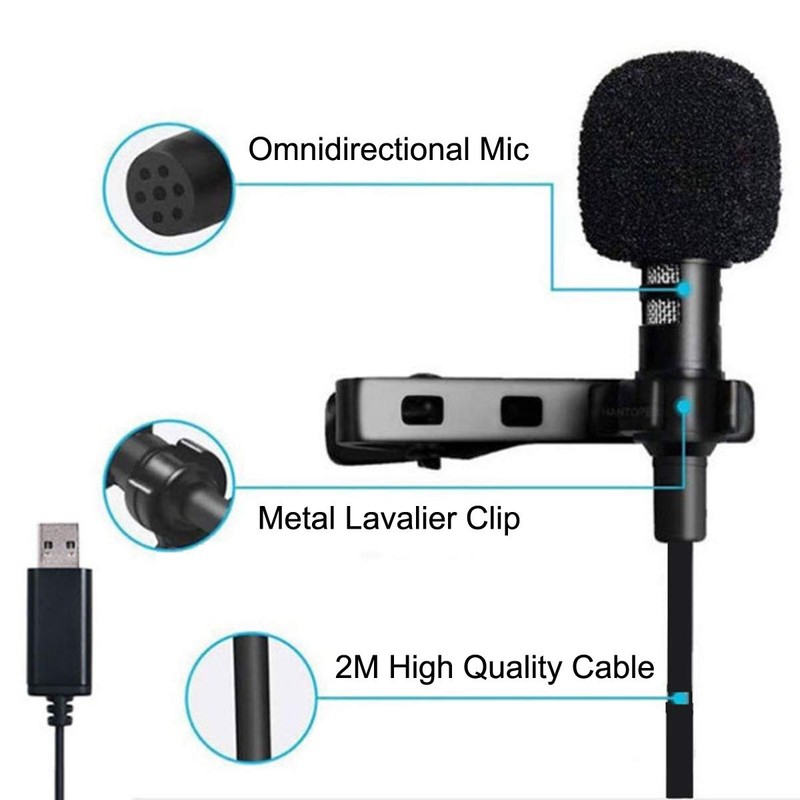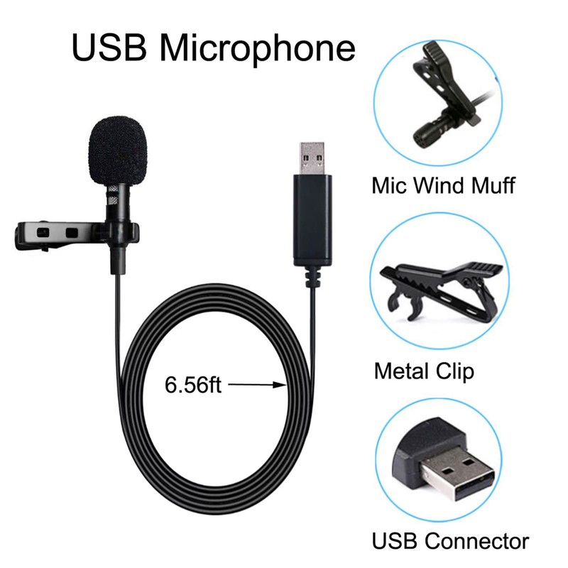 - MICMXMO USB Microphone Lavalier Lapel Clip on Mic, Plug & Play ,No Driver Required, the cable length is 6.56 feet (2M).