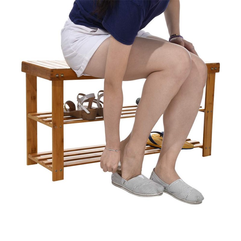 - 【3-Tier Breathable Shelves】3-tier slatted shelves make shoes breathing from the gaps and preventing any odor. A combination of shoe rack and bench can help you saving space.