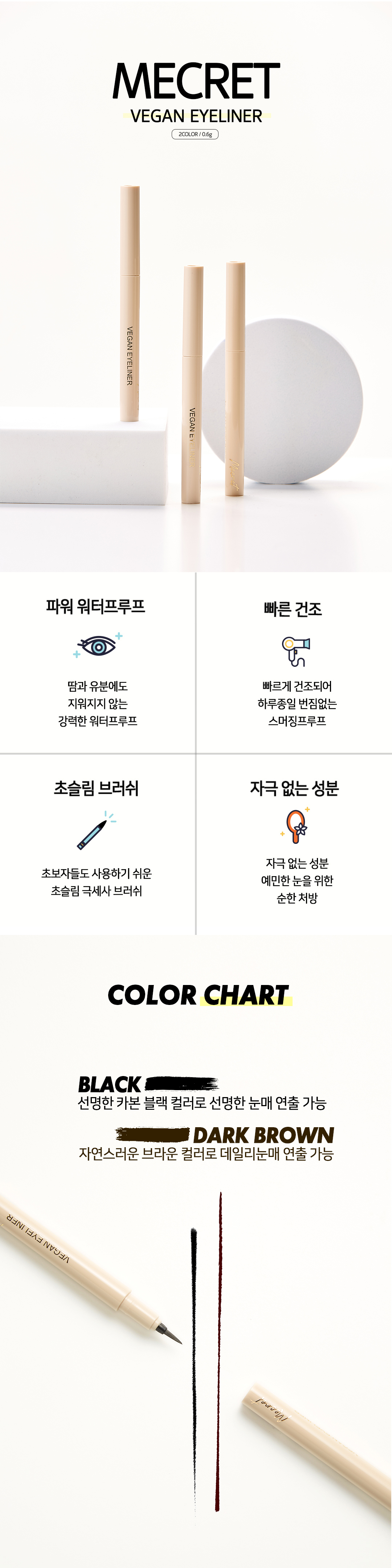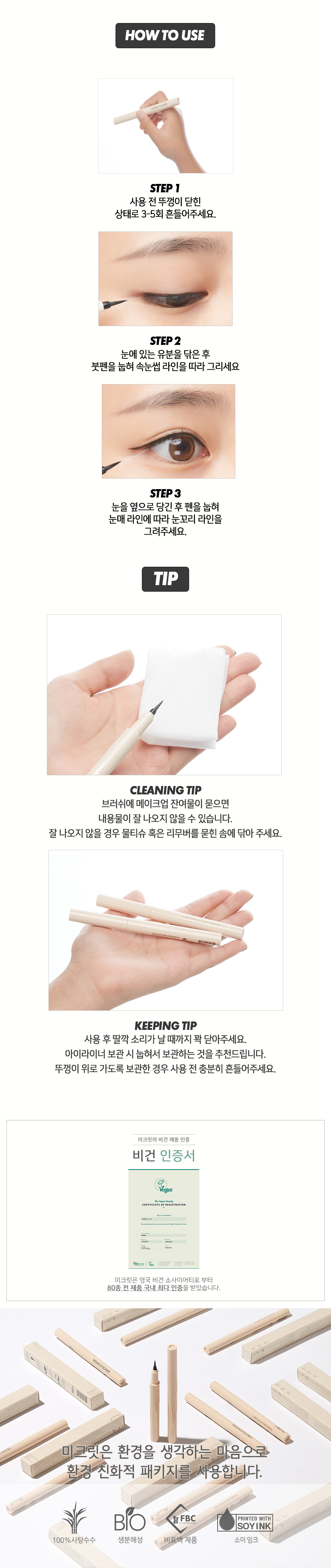 MICRIT 1+1 MICRIT Vegan non-smudge lukewarm water cleansing eyeliner, black + dark brown / 미크릿 1+1미크릿 비건 안번지는 미온수클렌징 아이라이너, 블랙+다크브라운