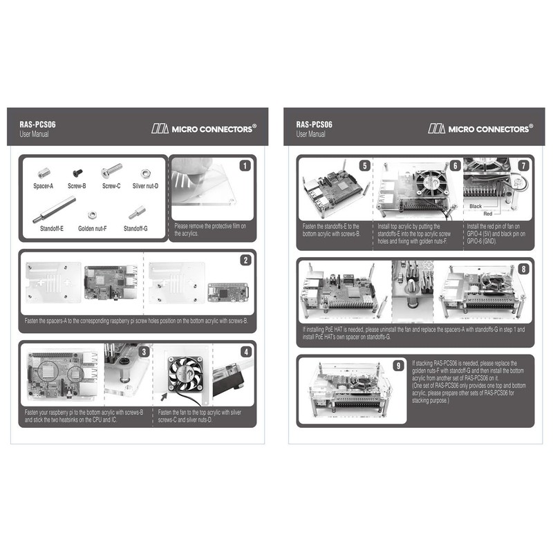 Micro Connectors Acrylic Stackable Raspberry Pi 5, Pi 4 & Pi 3 Case with Fan- Clear (RAS-PCS06)