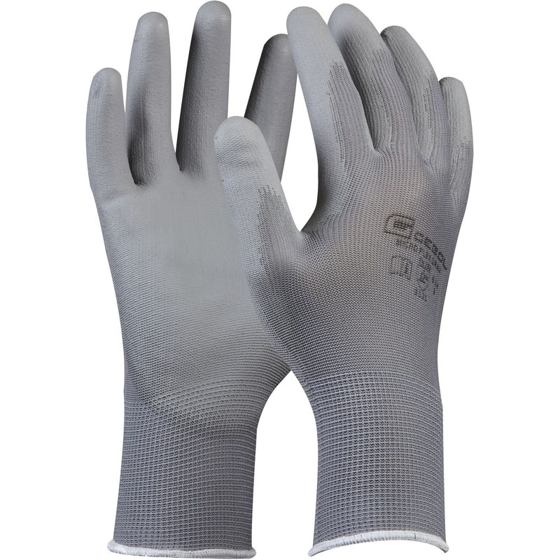 - Protective glove made of seamless fine knit in polyester with polyurethane palm coating
