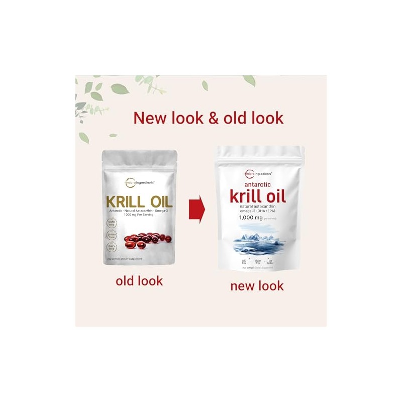Micro Ingredients Antarctic Krill Oil Supplement with Natural Astaxanthin, 1000mg Per Serving, 300 Soft-Gels, Rich in Omega-3s EPA & DHA, Supports Immune System & Brain Health, Easy to Swallow