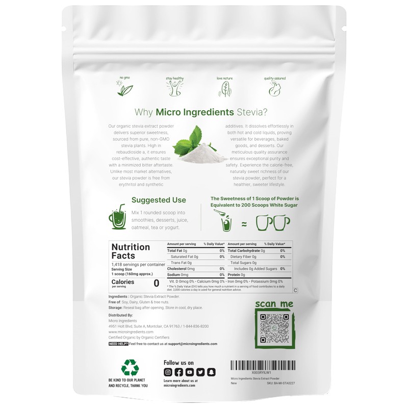 - 1 Teaspoon of Stevia Sweetener can Have Similar Sweetening Power as a Whole Cup of Sugar, Stevia Powder Organic, Best Source for Stevia Baking and Stevia Drinks.