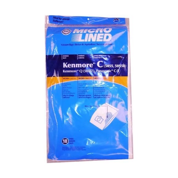 Kenmore 5055, 50557 and 50558 Micro Lined Canister Vacuum Cleaner Bags. Also fits Kenmore Type C, Type Q and Panasonic C-5. 10 bags per pack.
