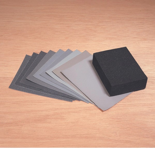 Ultra fine grit sandpaper produces the ultimate polished finish! Used for years to restore airline windows to optical clarity, woodworkers have discovered that these incredibly fine abrasive cloths put a polished sheen on bare wood and a handsome luster on finish coatings. This set is ideal for Pen Makers with the paper sized for sanding right on the lathe! Abrasive crystals last up to 15 times longer than normal abrasives. Kit includes: One 3" x 4" piece of each of nine abrasive grits from 1,500 to 12,000 and a special foam sanding block.
