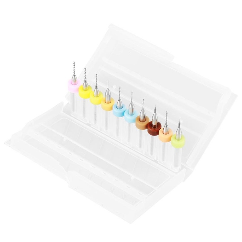 Micro PCB Drill Bit Set, 0.1-1.0mm Solid Tungsten Carbide CNC Engraving Print Circuit Board Drill Bits Rotary Tool 10pcs
