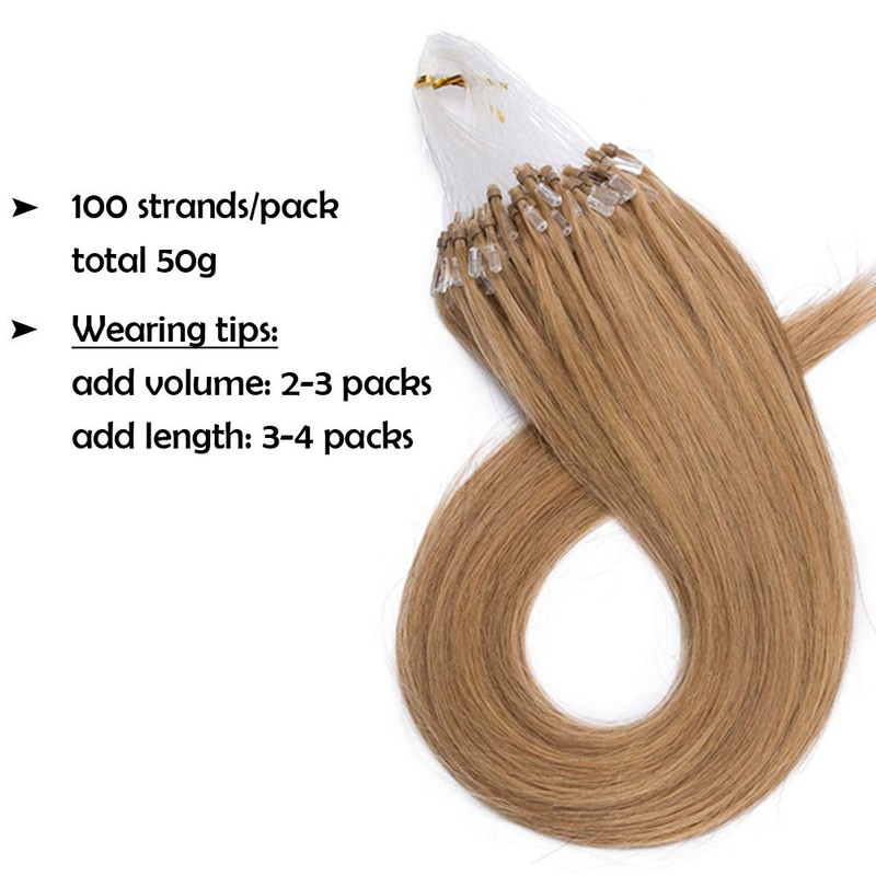- ★ Hairro micro loop human hair extension, 100% real human hair, each pack with 100 strands, all length are 50g/pack, so the longer size hair would be thinner, kindly note.