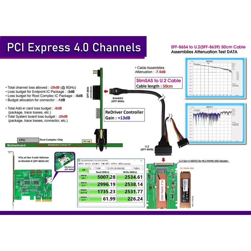 - U.2 (SFF-8639) PCIe Gen4 Cable provides 3.3V Hot Plug Power.