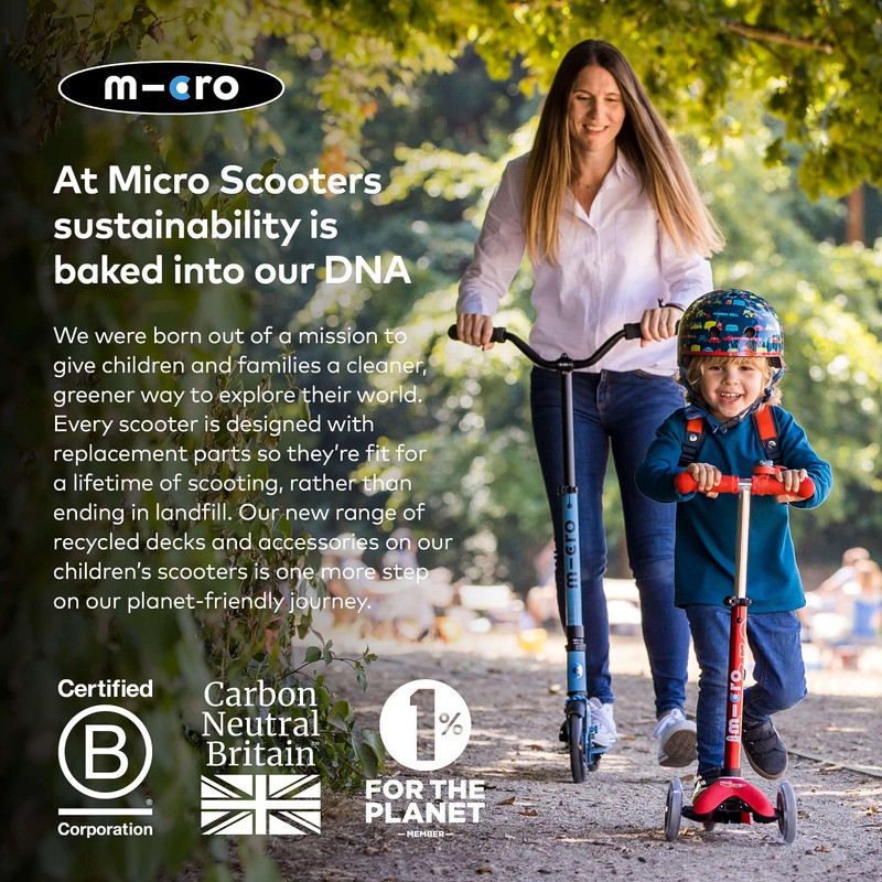 The first Micro scooter was invented in Switzerland when a group of friends wanted a quicker way to get from A to B without relying on bulky bikes or having to haul their car out of the garage. Since then, they have sold millions of their streamlined folding scooters around the world. After spotting the Swiss scooter in a Clapham playground, two mums, Anna and Philippa, teamed up to distribute Micro scooters in the UK and share their passion for Micro’s bright idea with the nation. Micro was created to make everyday journeys better. Better for today’s families. Better for our world. Over 20 years later “make it better” is a shared goal that continues to drive all we do. We're on a journey. We have a long way to go. But we're committed to doing our bit every day to have a positive impact-for people and planet. We think scooting is about more than just getting from A to B. We think scooting has the power to help people feel better, move better and tread more gently on our planet. So we're committed to constantly finding ways to help spread Micro feel-good to as many people as we can-and to help them stay safe while they scoot. Team Micro may be small, but our shared goal means we pack a mighty punch. Driven by our customers, focused on making everyday journeys better-together we make good things happen.