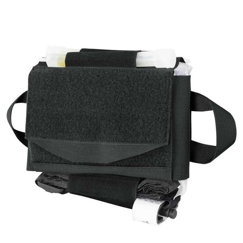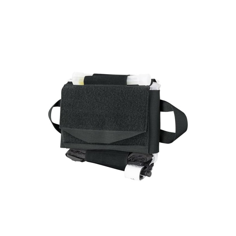 - Compact and lightweight|Quick access pull handles on both sides|Inner carrier with elastic loops|Exterior elastic loops for tourniquet chemlights or sharpie|Adjustable outer carrier|Multiple mounting options – Belt or MOLLE|Two 4” MOD Straps Included|Imported|Size: 4”H x 6”W x 2”D