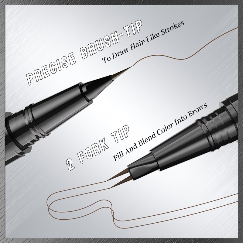 Microblading Eyebrow Pen, Brown 2-in-1 Dual-Ended Eyebrow Pencil, Long-lasting Brow Pencil with Micro-Fork-Tip & Precise-Brush-Tip, New Upgraded Dual Ended Makeup for Natural Looking Eyeliner Brows