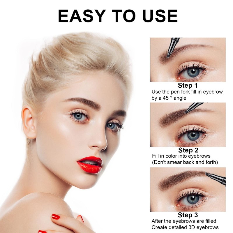 This Magical Precise Waterproof Brow Pen has liquid texture, Waterproof, Sweat-proof, Oil-proof, Smudge-proof and Long-lasting rich coloring formula.