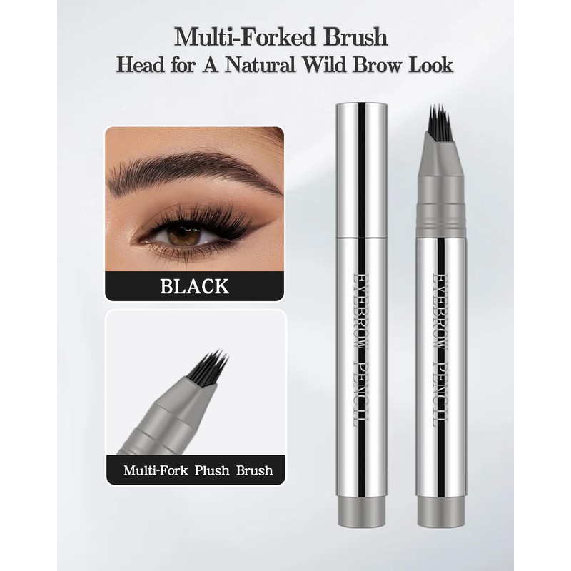 Microblading Liquid Eyebrow Pencil, Long-Lasting Waterproof Smudge-Proof Multiple Fork Tip Angled Wild Brow Pen, Filler Dye Eye Brow Pencil Thin Hair-Like Strokes,Last All Day Makeup for Women-01Black