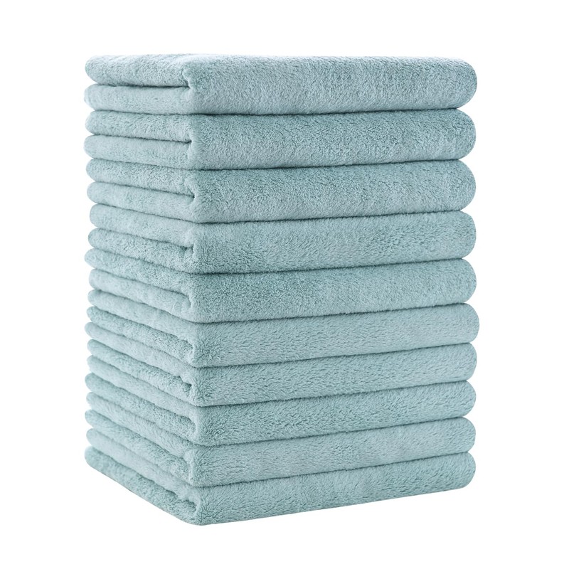 - (Set of 10) Face Towels: Material: Microfiber. Size: Approx. 13.8 x 29.5 inches (35 x 75 cm). Set Contents: 10 pieces. Color: Green. Versatile: Perfect for business trips, travel, bathing, and a wide variety of other situations. Not only can you use it yourself, but it also makes a great gift for someone special