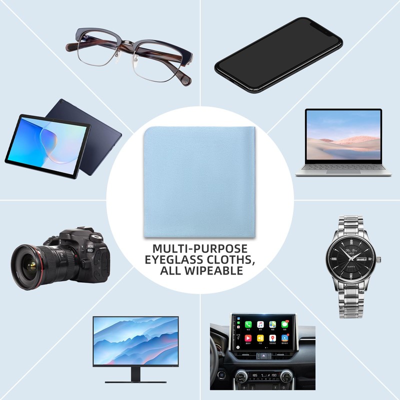 - 3.Multi-Purpose : Microfiber material safely removes dust, fingerprints, and smudges from glasses, camera lenses, phone/tablet screens, car dashboards, and mirrors without causing scratches
