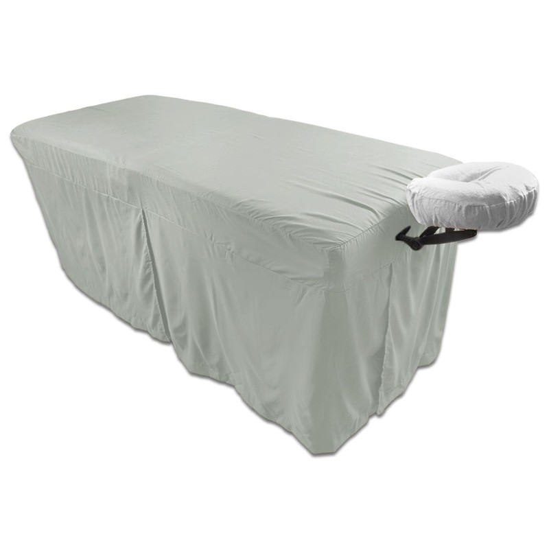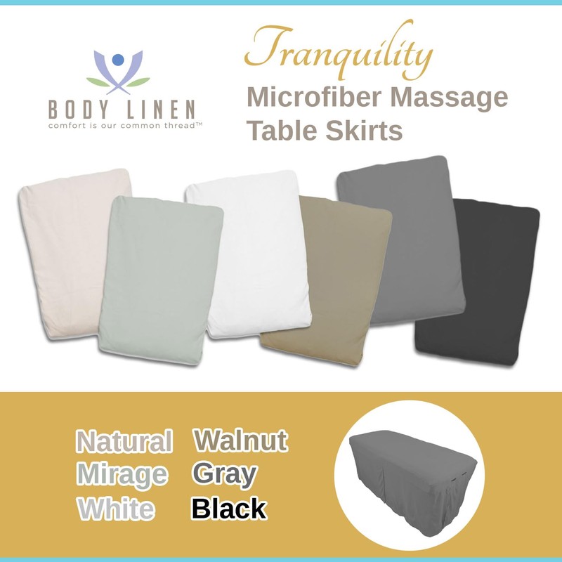 - MASSAGE TABLE SKIRT - Give your table a soft, clean and professional look thatÕs easy to clean and care for, with the Microfiber Massage Table Skirt in Mirage Grey from Body Linen