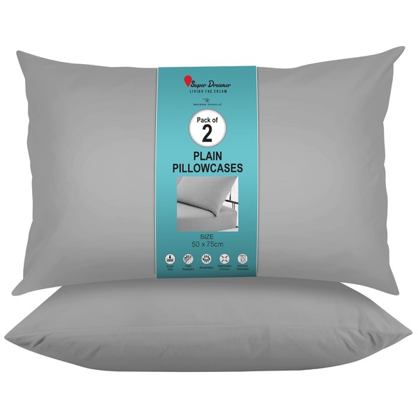 Microfiber Pillow Case 2 Pairs - Housewife Pillowcases - Plain Dyed Soft & Breathable Covers - Standard Size 75x50 cm - Wrinkle & Fade Resistant - Easycare - Machine Washable Bedding - Grey
