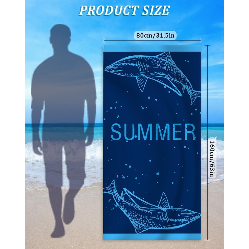 Microfibre Beach Towel, Sand-Free, Quick Drying and Lightweight Beach Blanket, Bath Towel, Large 160 x 80 cm for Travel, Beach, Sauna (Blue Shark, 80 x 160 cm)
