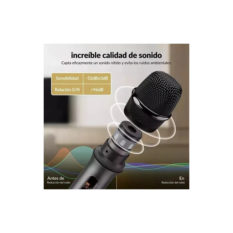 Haz que tus buenos momentos sean aún mejores con los micrófonos inalámbricos JBL PartyBox. Simplemente conéctalos a cualquier JBL PartyBox o utiliza el dongle para disfrutar de la libertad de una conexión inalámbrica y deja que tu voz se escuche. Conseguirás un sonido claro y fascinante tanto en espacios interiores como exteriores con estos micrófonos especialmente diseñados para reproducir un sonido increíble en cualquier altavoz PartyBox. El filtro pop de espuma incorporado minimiza los sonidos de voz externos mientras cantas un dúo con tu mejor amigo, y su sistema de montura a prueba de golpes evita ruidos indeseados cuando pasas el micrófono a otra persona. Hasta 20 horas de tiempo de reproducción y además, como incluso puedes usar el micrófono mientras se carga en el cargador integrado de PartyBox, la diversión continúa hasta que se termine la fiesta. Lleva el ritmo a tu casa con el micrófono inalámbrico JBL PartyBox.
