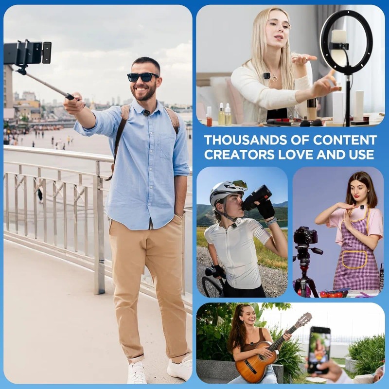 Diseño portátil y versátil: los micrófonos compactos y livianos y la funda de carga caben fácilmente en su bolsillo o bolsa, lo que lo hace ideal para los creadores de contenido que estén donde estén. La configuración de doble micrófono es perfecta para entrevistas, duetos o grabaciones con varias personas, ya que brinda flexibilidad para una amplia gama de escenarios de grabación.