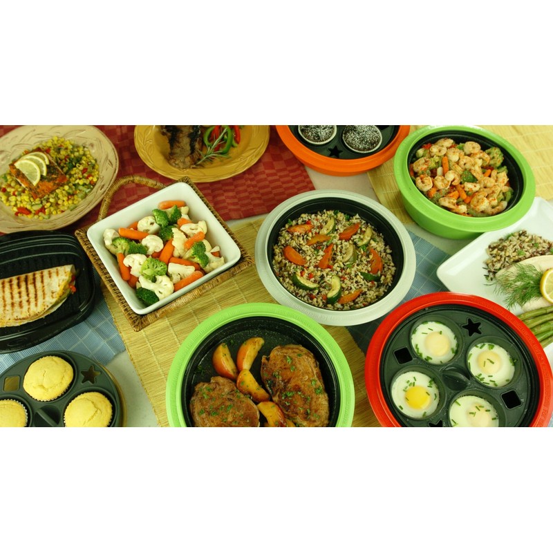 Microhearth 1.5-Quart Nonstick 4-piece Everyday Pan Set for Microwave Cooking, Red
