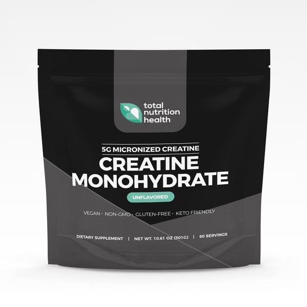 Total Nutrition Health Creatine Monohydrate – 5g Micronized Creatine Monohydrate Powder – Vitamin D and Black Pepper Extract – Unflavored Pre-Workout with Creatine for Energy, Muscle Performance