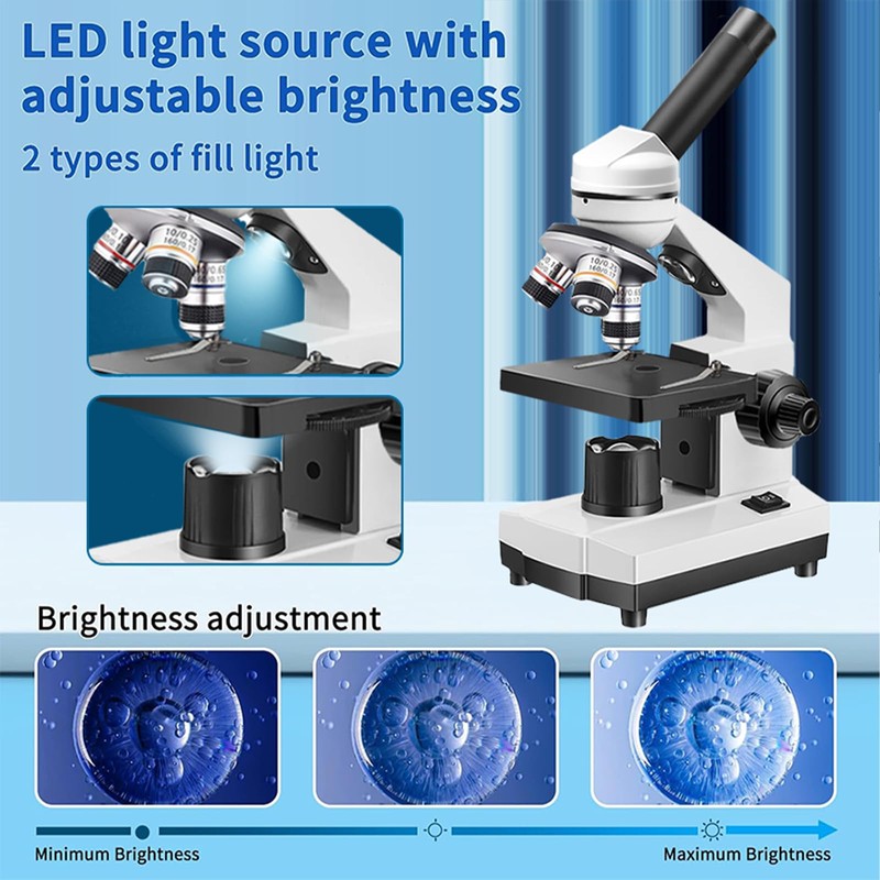 ​​🔬 The Perfect Microscope Kit for Budding Scientists & Students!​​ Unlock the wonders of the microscopic world with our ​​high-quality Student Microscope Kit​​! Designed for ​​beginners, students, and hobbyists​​, this ​​portable compound microscope​​ offers ​​100x to 2000x magnification​​, making it ideal for observing ​​plant cells, bacteria, insects, and more​​. Whether for ​​school projects, home experiments, or STEM learning​​, this microscope provides ​​crisp, clear imaging​​ for an immersive scientific experience. ​​🌟 Key Features:​​ ✅ ​​High Magnification (100x-1000x)​​ – Explore tiny details with ​​3 magnification levels​​ (100x, 250x, 1000x) for versatile viewing. ✅ ​​Dual Illumination System​​ – ​​Top & bottom LED lights​​ with adjustable brightness ensure optimal specimen visibility (battery or USB-powered). ✅ ​​Monocular Head with Eyepiece​​ – Comfortable ​​45° inclined viewing​​ reduces eye strain during long observation sessions. ✅ ​​Precise Focus Control​​ – Coarse and fine-tuning knobs allow ​​sharp, accurate focusing​​ for beginners and advanced users. ✅ ​​Complete Accessories Kit​​ – Includes ​​prepared slides, blank slides, cover slips, tweezers, dropper, and more​​ for hands-on learning. ✅ ​​Portable & Lightweight​​ – Easy to carry for ​​classroom, lab, or outdoor exploration​​. ​​🔍 What Can You Observe?​​ ✔ ​​Plant & Animal Cells​​ ✔ ​​Bacteria & Microorganisms​​ ✔ ​​Insects & Tiny Creatures​​ ✔ ​​Textiles & Hobby Specimens​​ ✔ ​​Water Samples & Minerals​​ ​​🎁 Perfect Gift for Young Explorers!​​ This ​​beginner-friendly microscope​​ is an excellent ​​educational gift​​ for students passionate about ​​biology, science, and discovery​​. It’s also great for ​​teachers, homeschoolers, and amateur scientists​​ looking for a ​​reliable, high-powered microscope​​. ​​📦 What’s Included?​​ 1x Compound Microscope (100x-1000x) 2x wf10x wf25x Eyepiece & 4x, 10x, 40x Objectives 1x USB-Powered LED Light (cable included) 10x Blank Slides & Cover Slips 1x Tweezers, Dropper, & Lens Cleaning Cloth 1x User Manual ​​🎯 Why Choose Our Microscope?​​ ✔ ​​Beginner-Friendly​​ – Easy to set up & use ✔ ​​High-Quality Optics​​ – Sharp, distortion-free images ✔ ​​Versatile Lighting​​ – Adjustable for transparent & opaque specimens ✔ ​​Great for Education​​ – Enhances STEM learning & curiosity ​​🔬 Start Your Scientific Journey Today!​​ Click ​​"Add to Cart"​​ now and explore the microscopic world with this ​​powerful, portable student microscope kit​​!