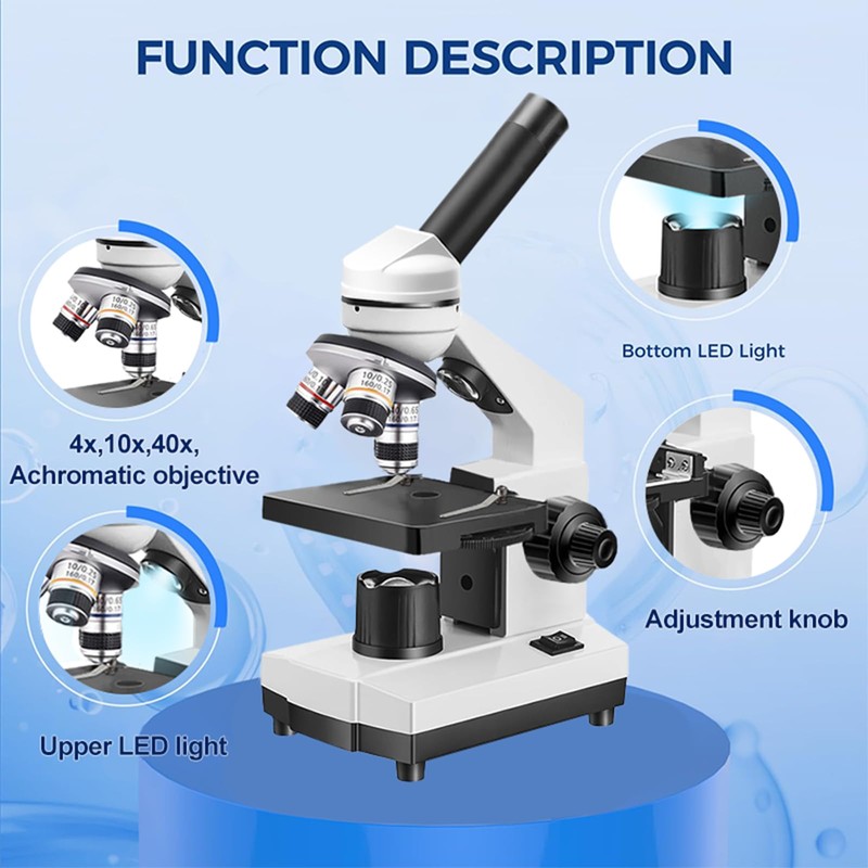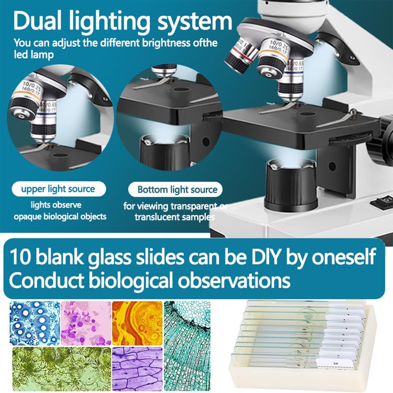 • 【Complete Kit Explore the microscopic world】 The Biological microscope is designed to help students/adult beginners/amateur scientists/hobbyists explore the wonderful world of life bioscience