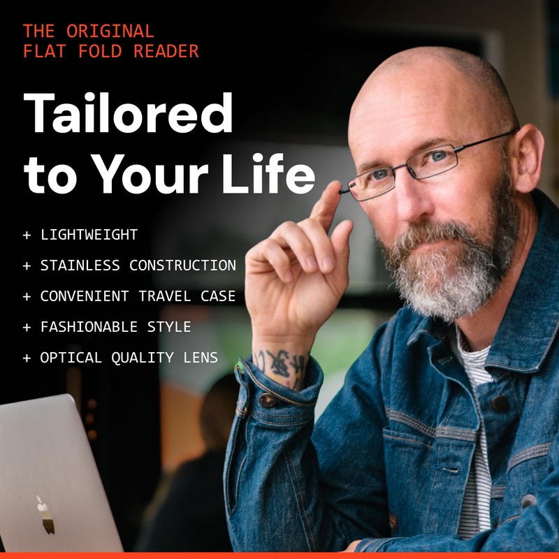 • COMPACT DESIGN: Integrated spring hinges in the temples and comfortable nose pads make these glasses a perfect fit for any face size and shape. With a contemporary style, these readers are a quality favorite. The patented frame design folds neatly into a compact flip-top case, perfect for on the go.