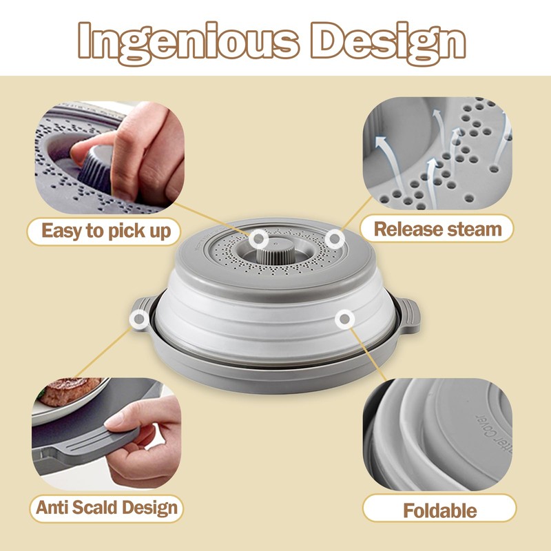 - 【All-in-One Microwave Splatter Cover & Tray】This microwave splatter cover combines a vented silicone lid with a stable base tray to help reduce food splatters, retain moisture, and support more even heating. An ideal choice for covering food in the microwave—helping keep your appliance cleaner while preserving the taste and texture of your meals.