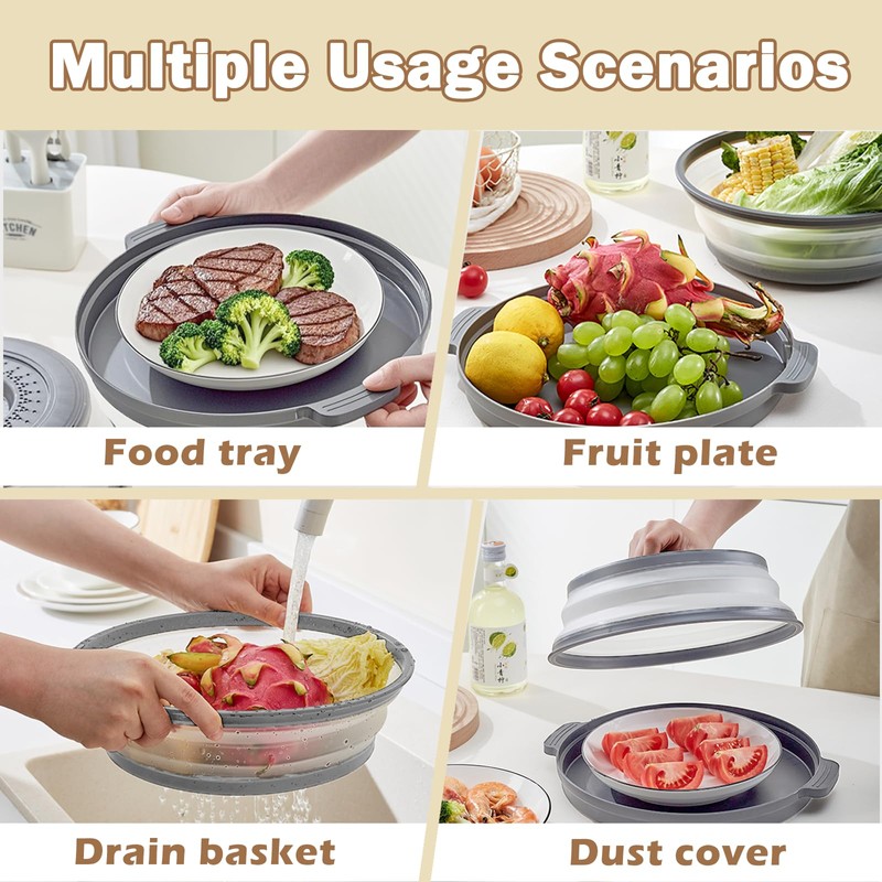 - 【Versatile Kitchen Tool for Multiple Uses】More than a microwave lid cover for food, this product doubles as a colander for rinsing fruits and vegetables, a tray for serving, or a general-purpose food cover for microwave oven. Its reusable, easy-to-clean design makes it a practical addition to any kitchen.