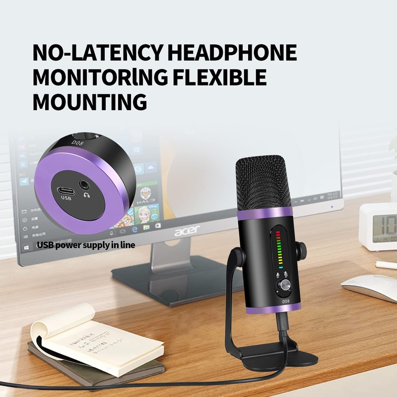 - Excellent sound quality: 360-degree rotatable stand, sampling rate: 192kHz/24bit, cardioid pickup, capture sound clearly and accurately;