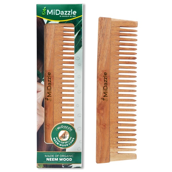Midazzle Organic Pure Kacchi Neem Wood Comb for men and women | Natural & Eco-Friendly | Hair Growth, Dandruff Control, Hair Straightening, Frizz Control