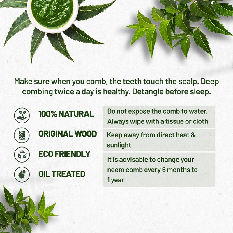 - Made of fresh (Kaccha) neem wood to maximise nutrient delivery to the scalp during deep combing.