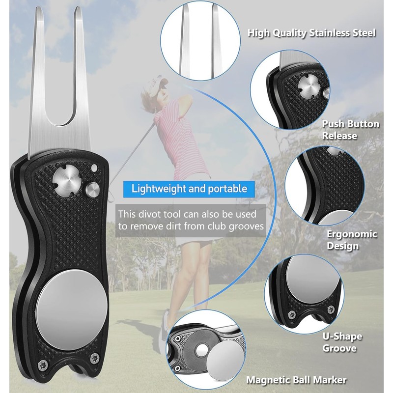 - Golf Divot Tool with Magnetic Ball Marker, Foldable Fork, and Push Button Release for ultimate convenience, Golf Multifunctional Divot Tool.