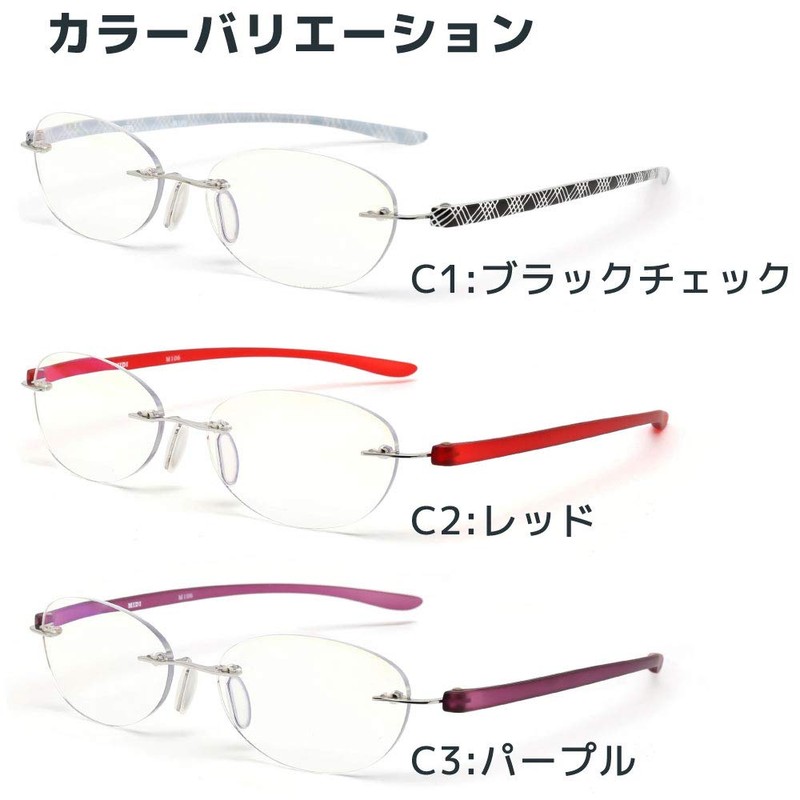 MIDI-ミディ おしゃれ 老眼鏡 ブルーライトカット 紫外線カット ブラック チェック 度数+1.00 フチなし軽量 (M-106,C1,+1.00)